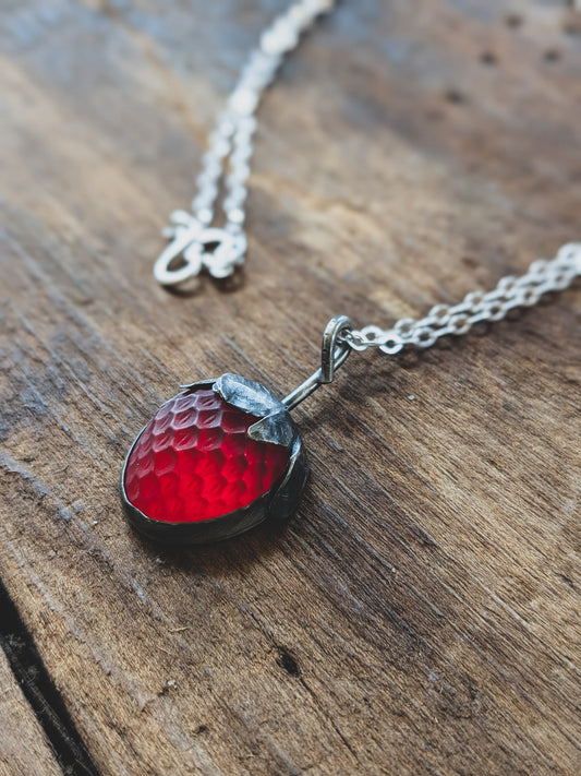 Handmade Sterling Silver Strawberry Necklace – Vintage Glass