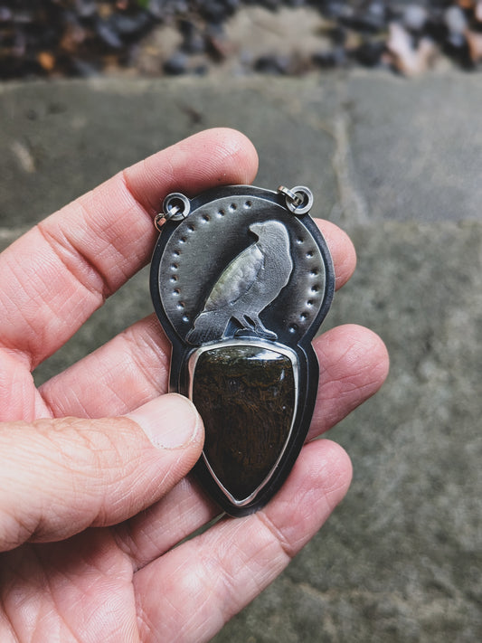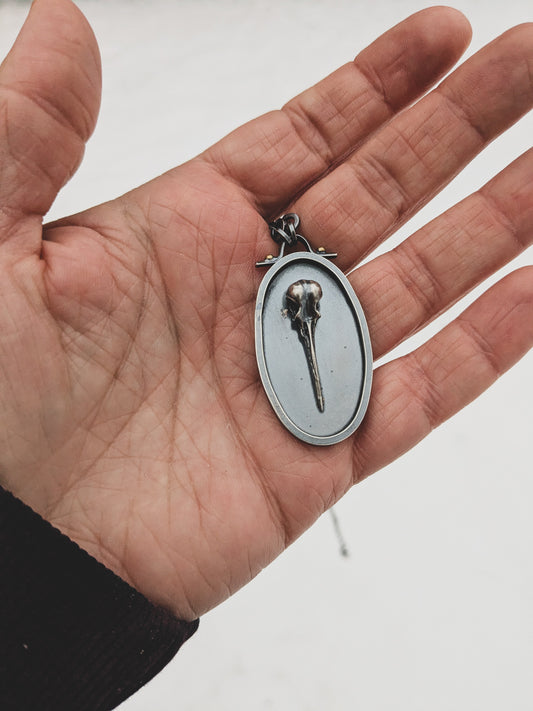 Handmade Sterling Silver Hummingbird Skull Pendant
