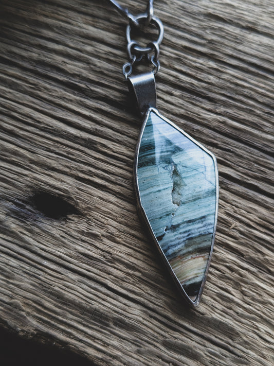 Sterling Silver Druzy Gary Green Jasper Necklace – Brutalist Gothic Handmade Chain